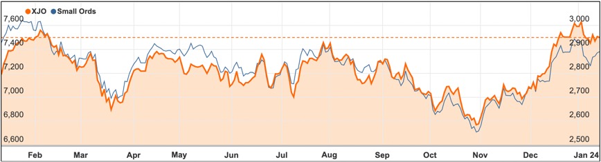 The Small Ords index rose 1.48% for the week to close at 2891.0 points.