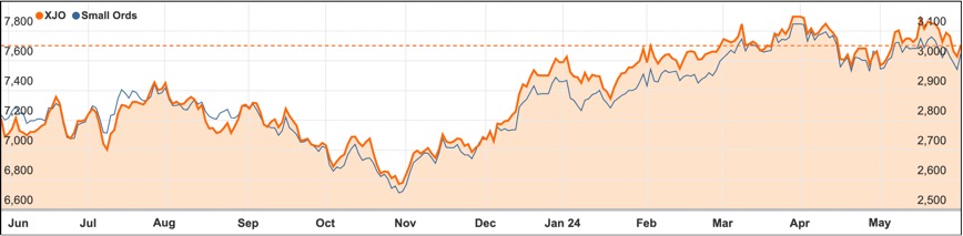 The Small Ords index inched 0.38% higher this week to 3022.9 points.