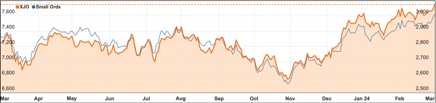 The Small Ords index rose 2.24% for the week to close at 3011.1 points.