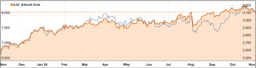 The Small Ords index fell 1.11% to 3136.7 points for the week.