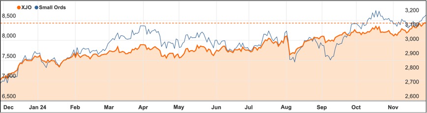 The Small Ords index rose 1.88% for the week to close at 3199 points.